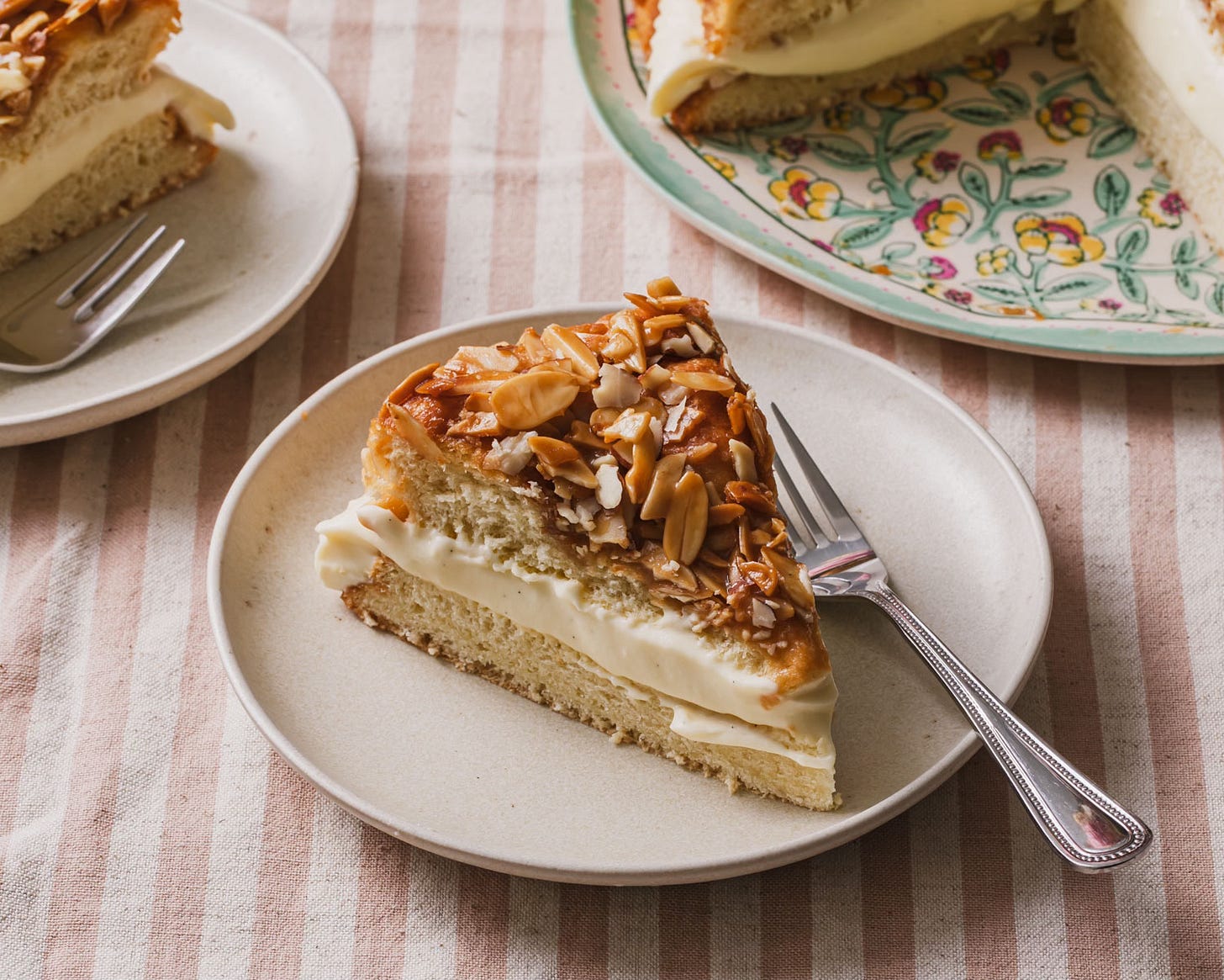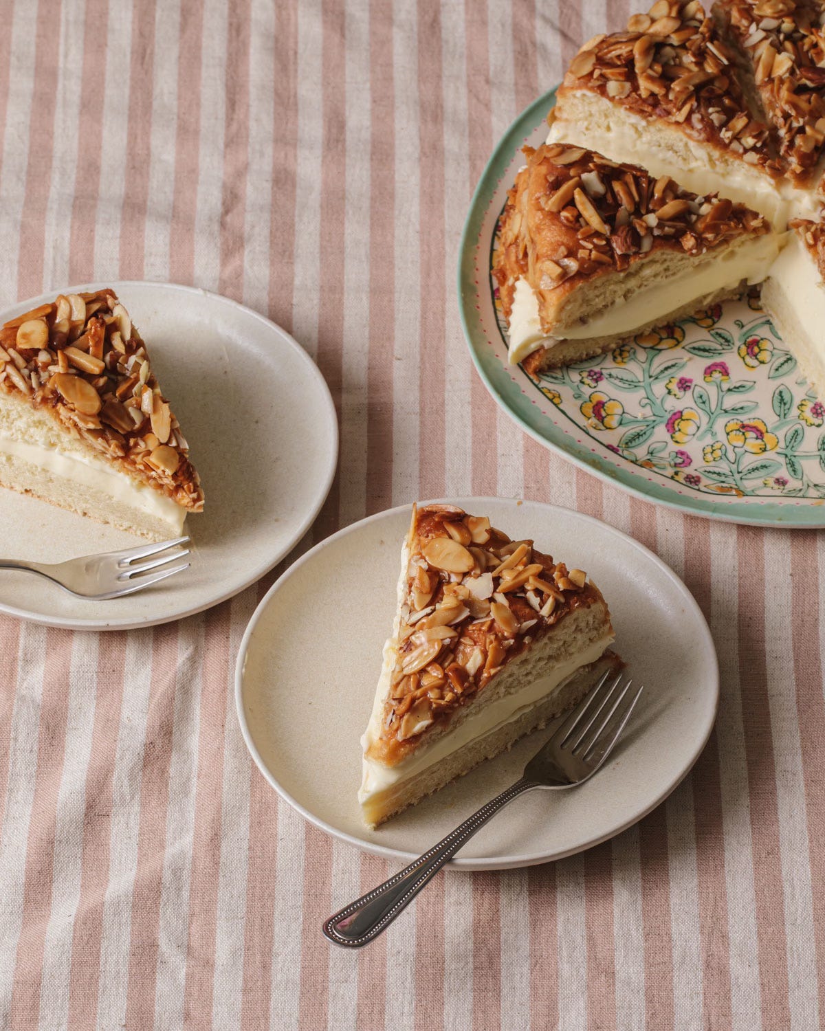 I am excited to share this Bee Sting Cake with you this week. I first made it years ago, trying to connect with my German roots, but never solidified the recipe until now. You know how much I love cake, but swapping cloying frosting for pastry cream and a yeasted dough instead of batter is a welcomed change. I recommend pairing a hefty slice with a warm coffee in the spring sunshine - pure bliss!