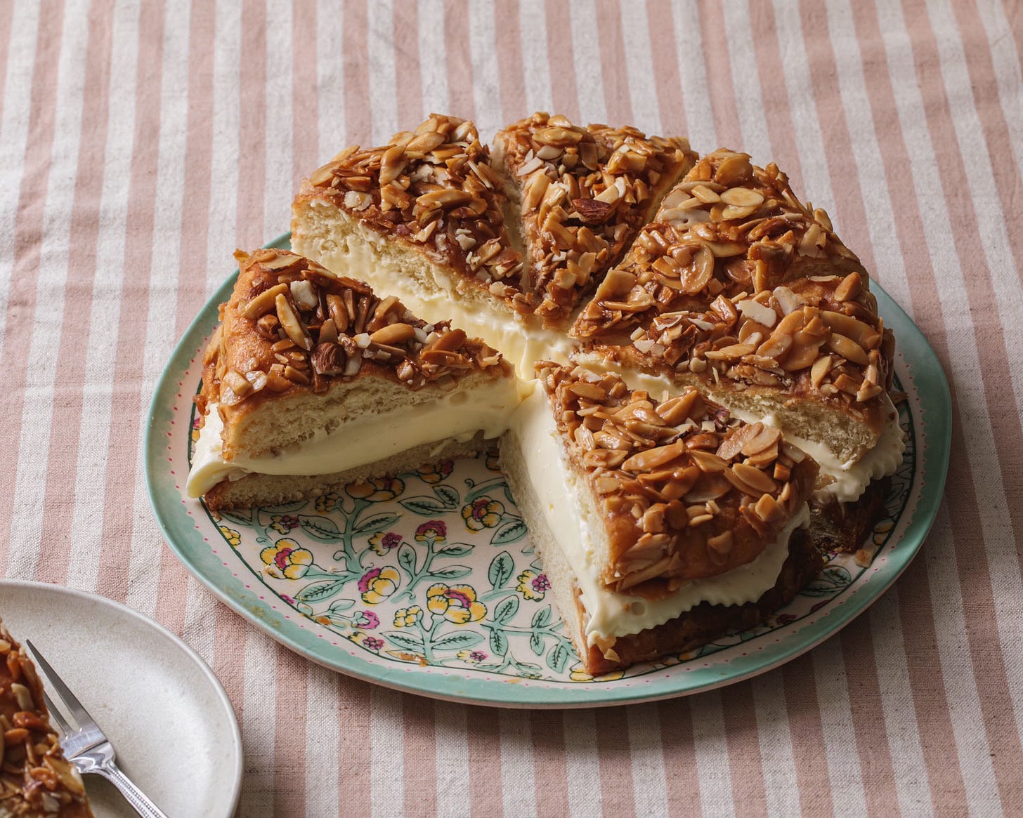 This classic German pastry is make from an enriched, buttery sweet bread. It is topped with caramelized, honeyed almonds and filled with lightened pastry cream that feels like eating a scrumptious cake. Of course it is a cake, but not the multi-layered or frosted variety I typically share here.