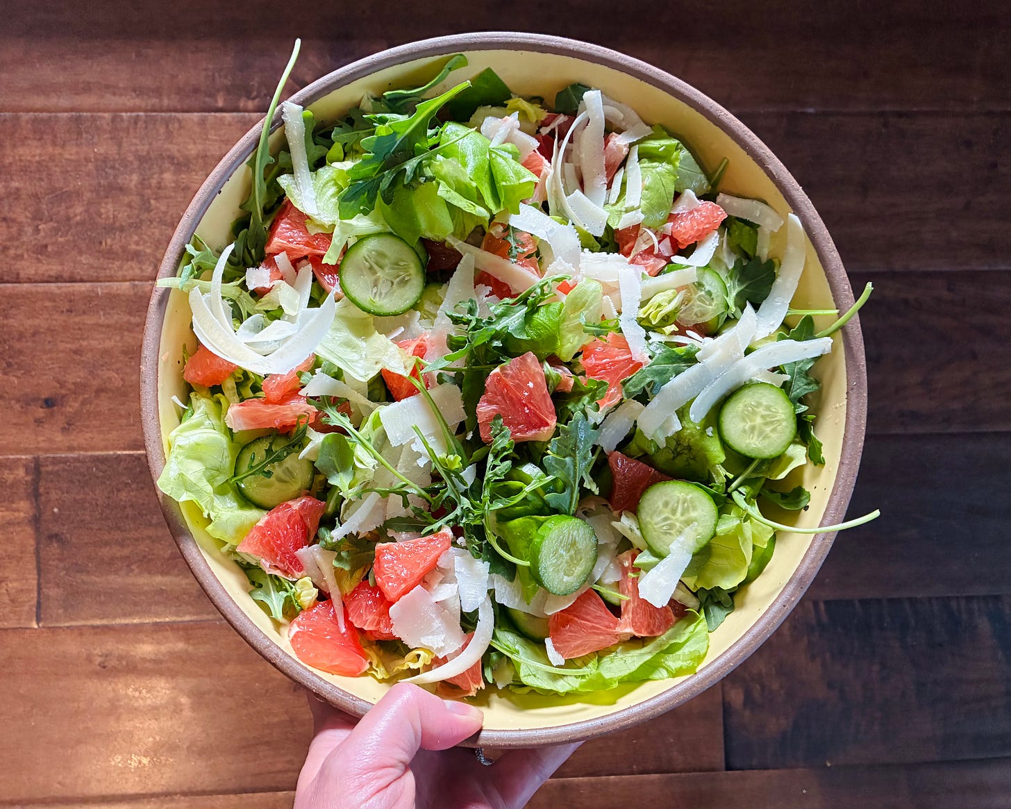 Salad always feels more like a meal than a side when it includes something cooked - roasted potatoes, pan-seared cauliflower, or blanched green beans. Even more so, salad turns into the main dish with added grains/legumes: cooked lentils, farro, a tin of beans, or torn bread - panzanella style.